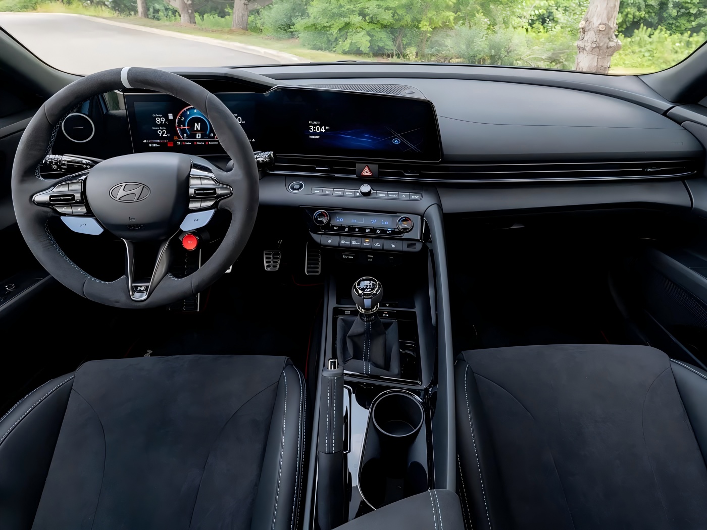 ในแง่ของการตกแต่งภายใน โครงร่างโดยรวมของรถใหม่ไม่ได้แตกต่างจาก Elantra N มากนัก แต่มาพร้อมกับพวงมาลัย Alcantara "N Performance" พร้อมเครื่องหมายบอกตำแหน่ง 12 นาฬิกา ในขณะเดียวกัน แถวหน้ามีเข็มขัดนิรภัยสีน้ำเงิน กาบประตูมีกาบบันไดโลหะ N Performance และรถยังมีพรมปูพื้น N Performance รวมถึงชุดตกแต่งภายในจาก Alcantara จำนวนมาก ตัวอย่างเช่น คันเบรกมือ คันเกียร์ และที่วางแขนที่เท้าแขนหุ้มด้วยหนัง Alcantara สุดท้ายมีโลโก้ “เวอร์ชั่น TCR” บนไฟที่มือจับประตูซึ่งเต็มไปด้วยอารมณ์ความรู้สึก